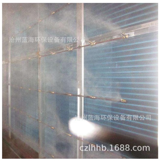 利用超高壓泵將水加壓至40公斤以上,經過高壓管路至高壓噴嘴霧化,霧滴的直徑僅為10-50um這些微小的霧化顆粒能長時間漂浮在空氣中漂浮在空間,由空氣分解,它們具有較強的表面活性和吸附能力對懸浮在空氣中的粉塵—— 別是直徑在5微米以下的可吸入顆粒進行有效的吸附,使粉塵受重力作用而沉降,從而達到抑塵作用。