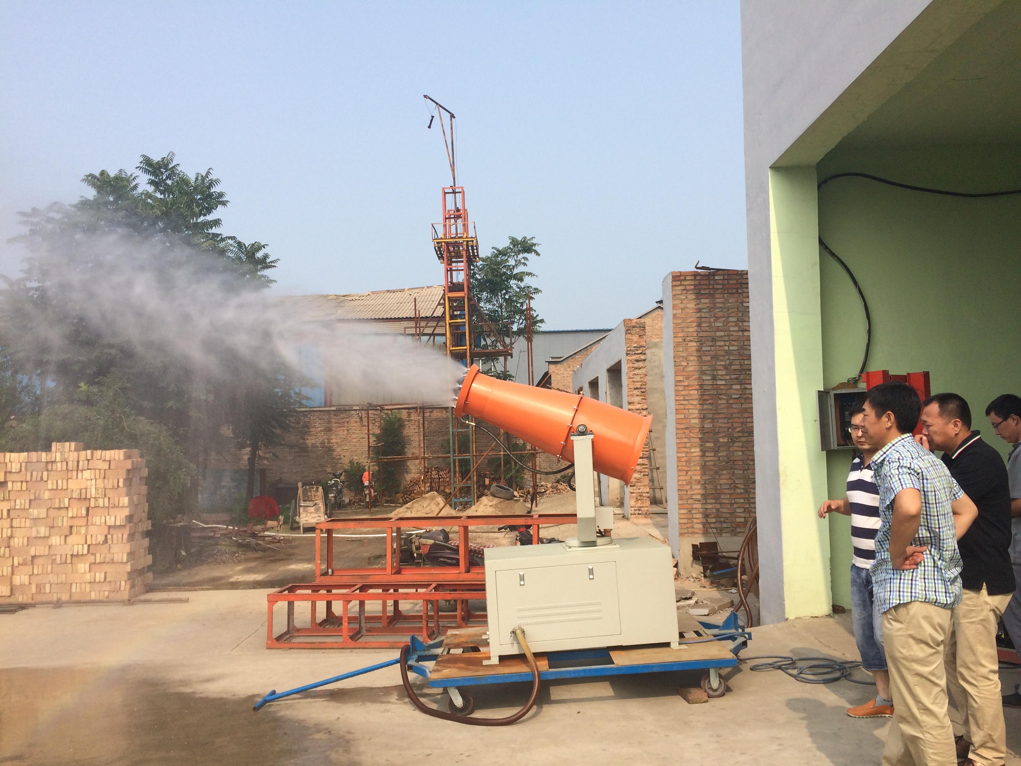 2015年7月25日,又是一個周末,也正是廣大客戶們可以放一放手頭工作到其他公司參觀一下產品的好時機,于是今天上午河北獻縣建筑工地客戶應邀來我公司參觀,我公司也把 研發的LHW-50型降噪除塵噴霧機拿給客戶參觀,在發電機的轟鳴下,除塵噴霧機噴出一條長長的霧化帶,在技術工人的操作下,我公司的除塵噴霧機做了上仰,下降,320度旋轉等動作,得到了客戶的一致認可。