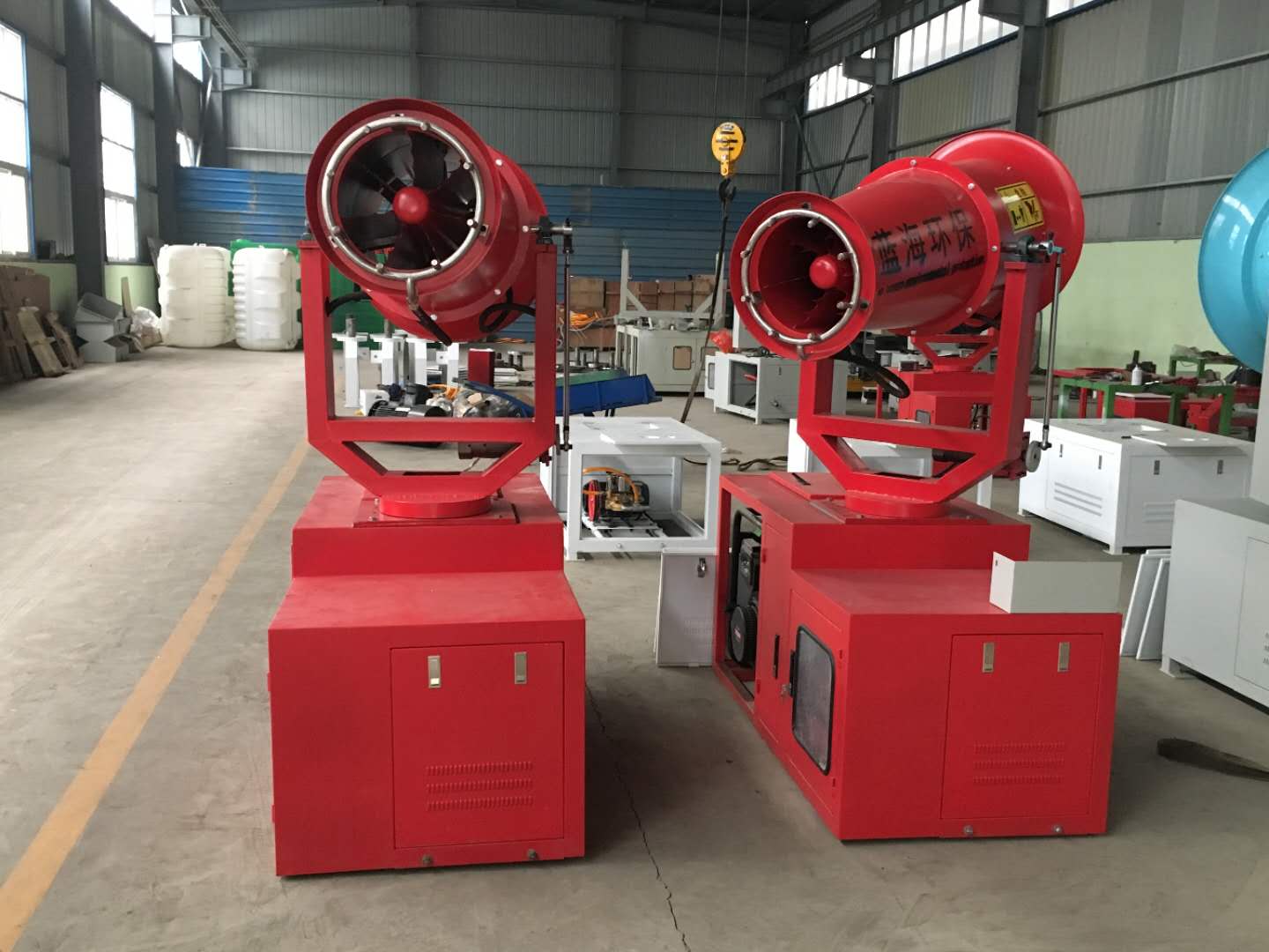 1.功率小、能耗低,在對研究的基礎上對霧炮機進行了反復的試驗研究,采用了風機變頻啟動,PLC控制,液壓轉動。在同等功率下噴霧設備噴的 遠,耗能 低,性能 穩定。