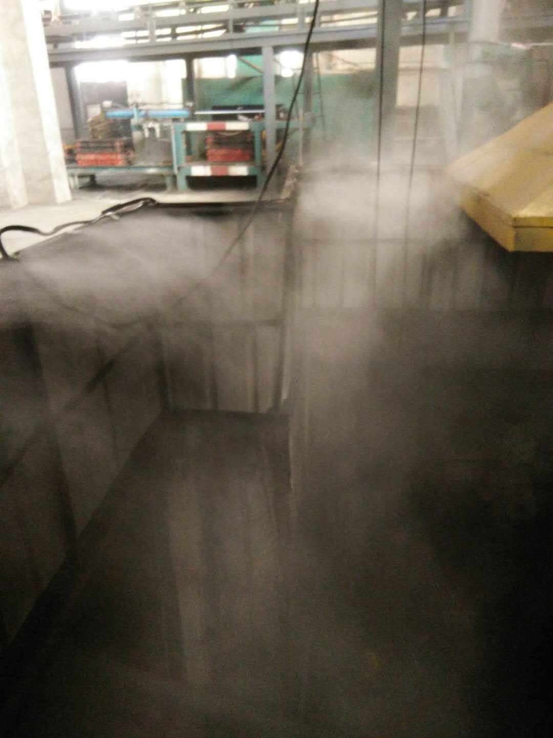 干霧抑塵技術是一種安全、高效的治理粉塵方式,主要是向起塵點產生的粉塵噴射“微米級干霧”,讓水霧與空氣中的粉塵顆粒結合,形成粉塵和水霧的團聚物,然后受重力沉降,達到抑塵目的。根據空氣動力學原理,當水霧顆粒的粒徑與粉塵顆粒的粒徑大小相接近且霧量足夠時,二者碰撞、接觸、凝聚的幾率會更大。鑒于大部分塵在10um的粉塵特性,采用粒徑大小、運動狀態均與之相似的10um的微霧與粉。
