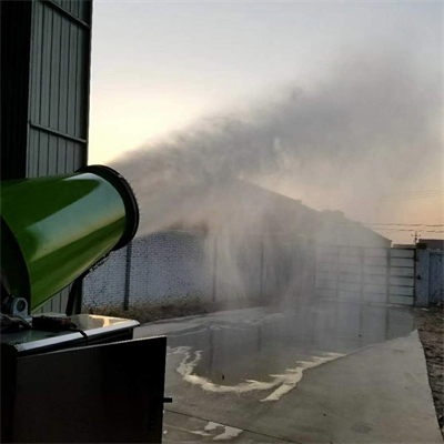 霧炮機主要由風筒組件、俯仰調節裝置、水平旋轉組件、高壓噴霧水系統以及電控系統組成。霧炮機的原理是灰塵可以通過與水結合而聚集和增加,使得細小的灰塵通過相等直徑的水滴的小胡作用,降低水面的張力,并使灰塵顆粒和水霧凝聚成一團,在重力額作用下,它落到了地面,當霧粒接近顆粒大小時,減塵效果 ,噴霧器通過高壓泵對水加壓,一定壓力的高壓水通過高壓霧化噴嘴產生直徑接近塵粒的水霧,通過大功率風扇將水霧送到除塵區域,制成水霧和霧氣,灰塵顆粒迅速附和凝結,在自身重力下沉降,達到降塵的目的,還具有加濕和冷卻功能。