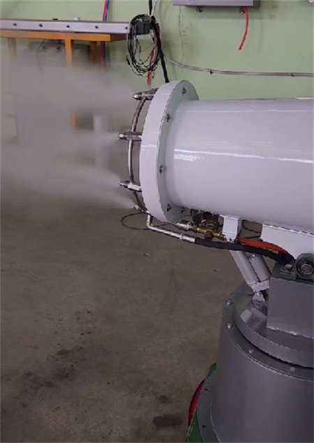 1、霧炮機的除塵效果與噴霧顆粒直徑是有密切關系的,而在這里其中,干霧霧炮的靈魂部件是噴嘴,將水霧化成適合的降塵水霧顆粒,從而加 快降塵速度,使得噴灑均勻