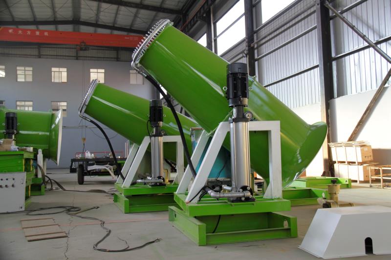 除塵霧炮機的 普及和應用,可以大幅減少工業粉塵的生產和擴散。霧炮除塵設備的原理是根據風送原理,先使用進口高壓泵,微細霧化噴嘴將水霧化,在利用風機風量和風壓將霧化后的水霧送到較遠距離,使得水霧到達較遠距離的同時能夠覆蓋 大面積,水霧與粉塵凝結后降落,從而達到除塵