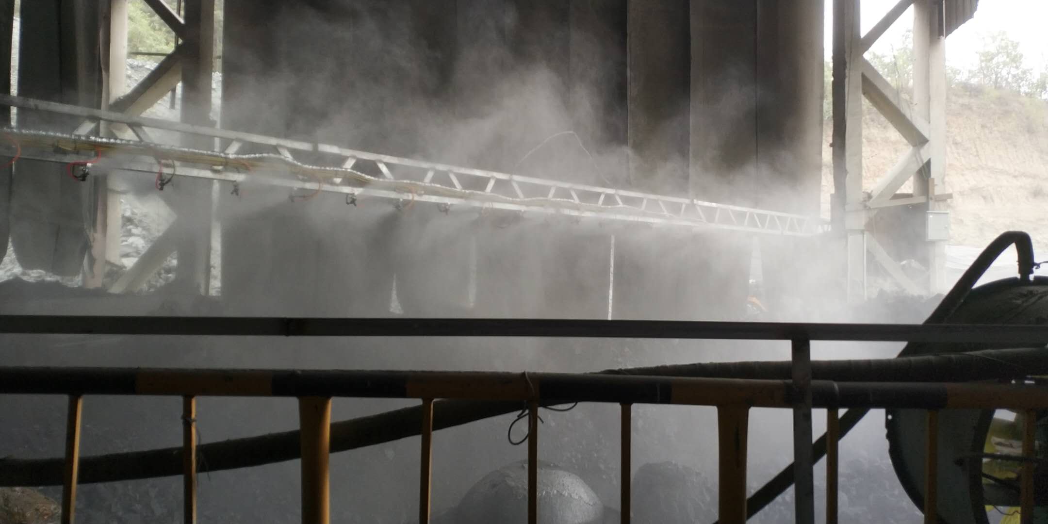 超聲波干霧抑塵裝置 一、超聲波干霧抑塵機理超聲波干霧抑塵機理: 超聲波干霧抑塵裝置采用模塊化設計技術,由干霧抑塵機、超聲波噴霧器、空壓機、儲氣罐、水氣連接管線和自動控制線路組成。超聲波干霧抑塵機理是壓縮空氣和水按照水汽配比混合到超聲波噴霧器,由壓縮空氣沖開水汽霧化噴頭的彈簧后進行加速并將水吸入水汽霧化噴頭的加速震蕩室進行破碎,并利用加速氣體將破碎后的水霧顆粒從噴嘴噴出。超聲波噴嘴產生的1~10微米的水霧顆粒,使水霧顆粒與粉塵充分相互粘結、聚結增大,并在自身的重力作用下沉降,從而達到抑塵的目的。實驗表明,只有當水霧和粉塵顆粒的大小接近時,粉塵顆粒在運動時與水霧顆粒相互碰撞粘結在一起的機率 ,抑塵效果 。超聲波干霧抑塵設備的 點如下: 霧粒直徑小,只有1—10微米大小的水霧顆粒,在捕捉大小約