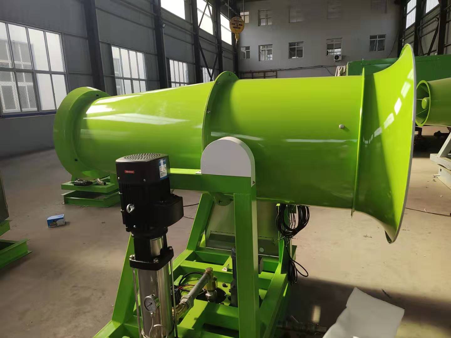 霧炮機接電源和水源時注意要點: 1)霧炮機使用的是由發電機組提供的工頻電源(也可外接市電電源),電動機額定工作電壓AC380V,發電機組輸出交流電壓400V,50Hz。 2)當使用三相380V市電時,在接入霧炮機電控箱前必須要有電源開關,在電源開關上應有良好的接地;電源線接至設備電控箱內。 3)在接電源線時,應先將電控箱前的電源開關斷開、處于OFF位置,經檢測確認無電后方可進行接線作業。 4)采用三相五線制,選擇電源線時,應根據產品技術參數上所載明的總功率而確定使用線徑,以確保電源線有足夠的載荷能力。 5)水源裝接時,設置噴霧專用閥門,經半工閥門后直接將采用管路連接霧炮機進水口和水箱出水口即可。
